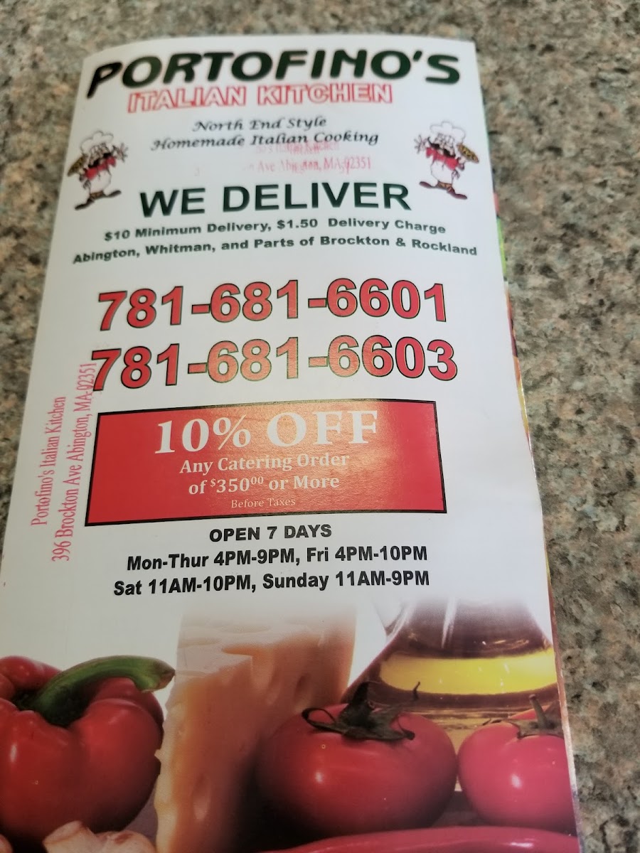 Welcome to Portofino's Italian Kitchen, a gem located in Abington, MA. This inviting eatery boasts a menu brimming with Italian delights that promise to tantalize your taste buds. Customers rave about their heavenly calzones, generously stuffed and perfect for sharing. The mushroom pizza, crafted from fresh toppings, has garnered a loyal following, thanks to its rich sauce and artisan dough.
